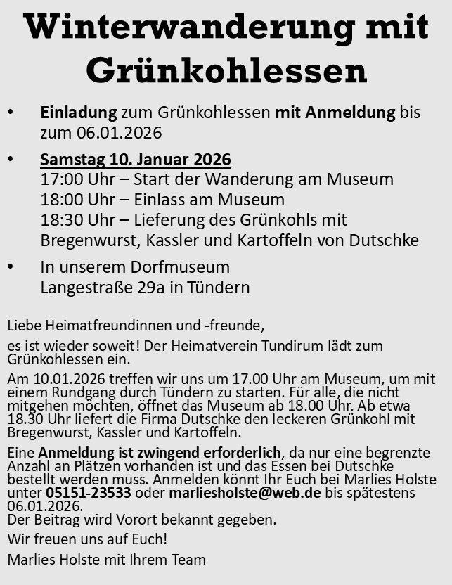 Die zentrale Treffpunkt für unsere Vereinsaktivitäten ist das Dorfmuseum an der Langen Straße in Tündern.